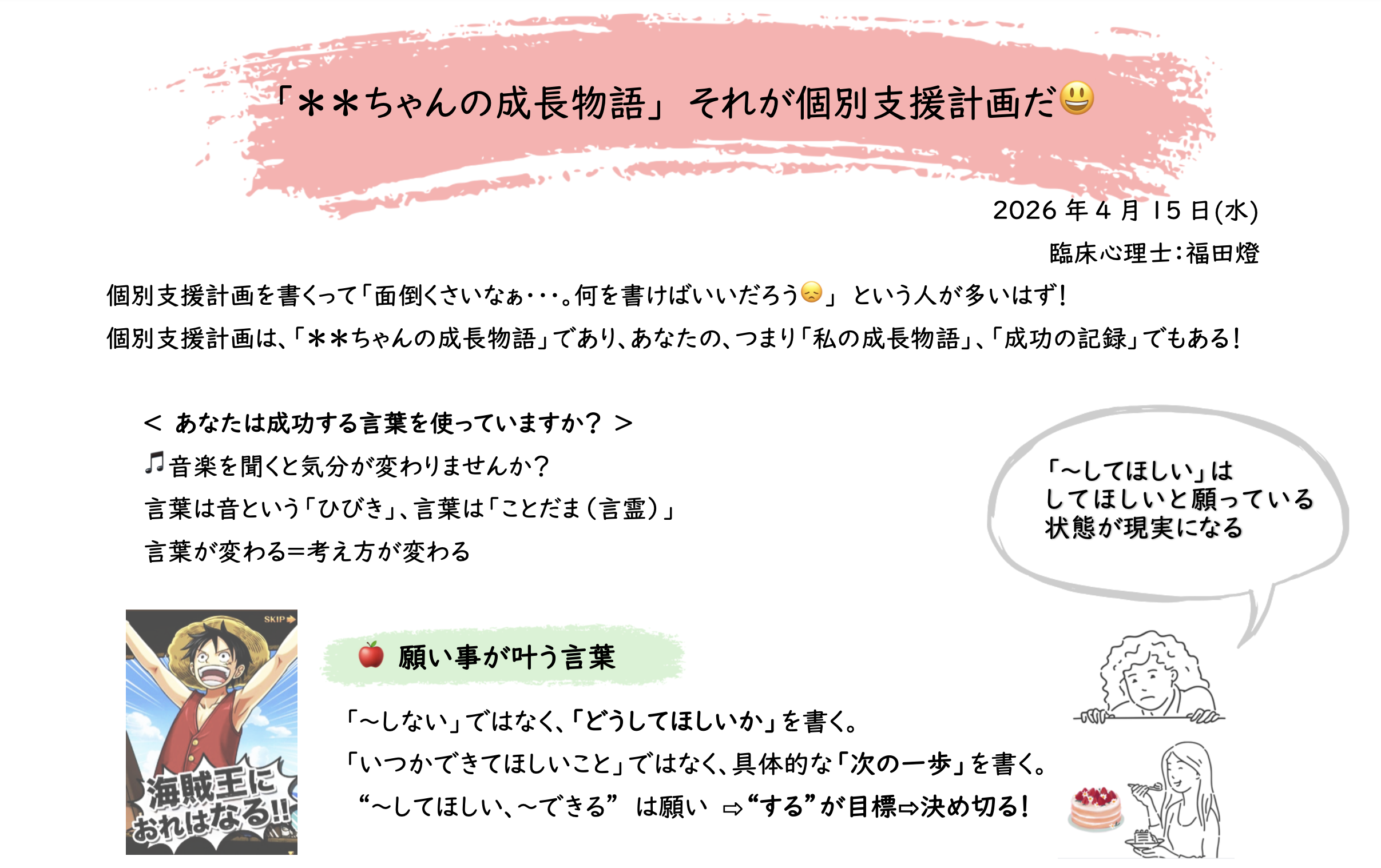 先日、私は個別支援計画の書き方研修を行ってきました✨