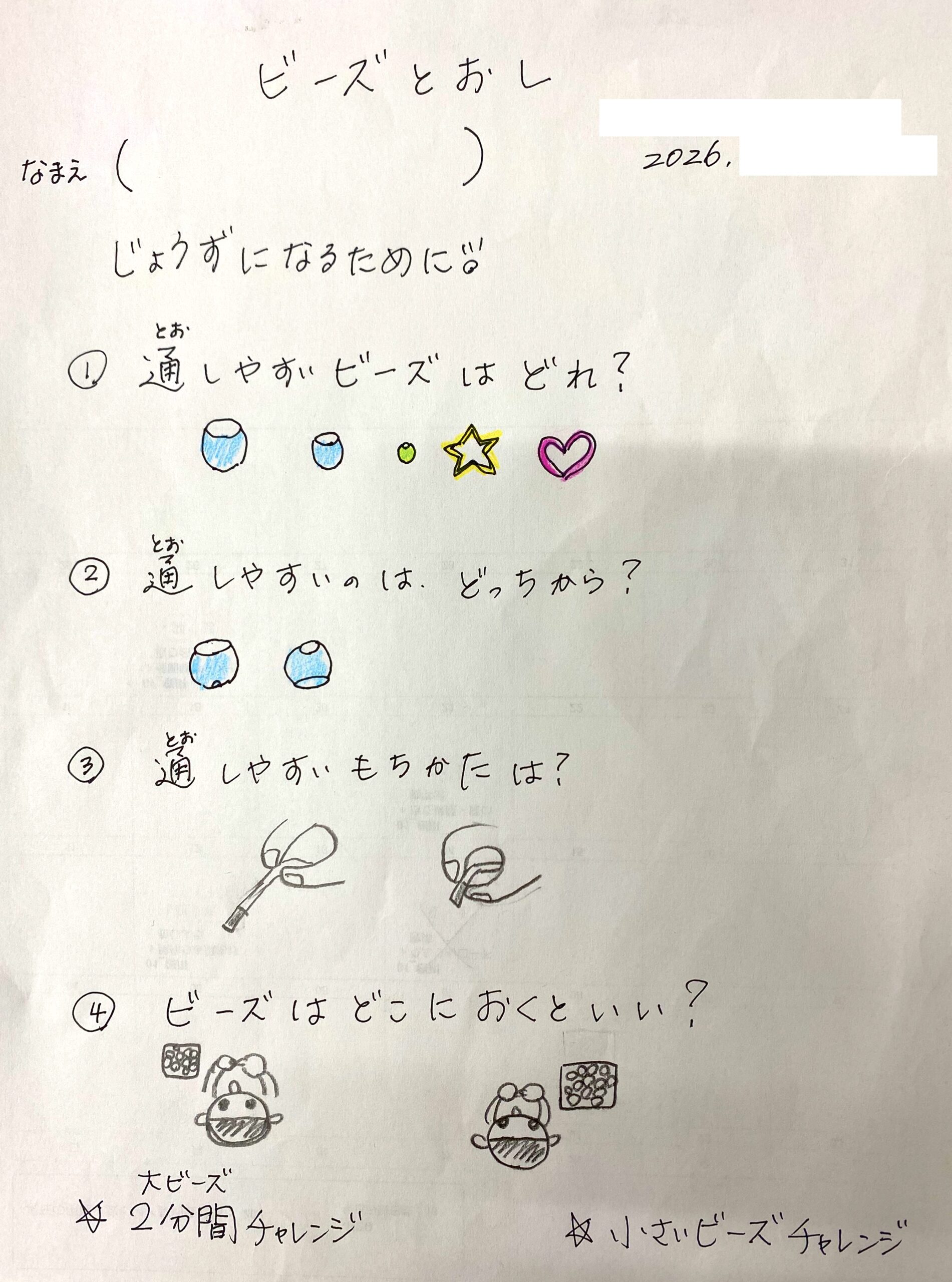 “考えて、工夫して、結果を確かめる”ビーズ通し課題